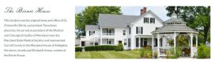 His residence in Carroll County is now part of a country inn. Dr. Birnie was a great-nephew of Upton Scott, the first President of the Faculty. Dr. Scott brought Dr. Birnie’s father from Ireland to oversee his lands. After Dr. Scott’s death, Dr. Birnie’s father moved the family to Taneytown in Carroll County.