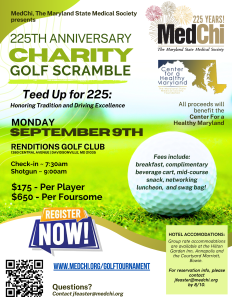 « All Events This event has passed. Charity Golf Scramble Hosted by Center for a Healthy Maryland September 9, 2024 @ 7:30 am - 2:00 pm « The MedChi Museum of Maryland Medical History – Grand Opening Lemons to Lemonade: The Role of PHP Monitoring in Restoring Clinicians with Unprofessional Behavior to Practice » Thank you to our Sponsors! Add to calendar Google Calendar iCalendar Outlook 365 Outlook Live Details Date: September 9, 2024 Time: 7:30 am - 2:00 pm Event Category: Center for a Healthy Maryland Fundraiser Website: https://charitygolftoday.com/sponsor?e=16663&ce=6f35aa Venue Renditions Golf Club 1380 W Central Ave Davidsonville, MD 21035 United States + Google Map View Venue Website
