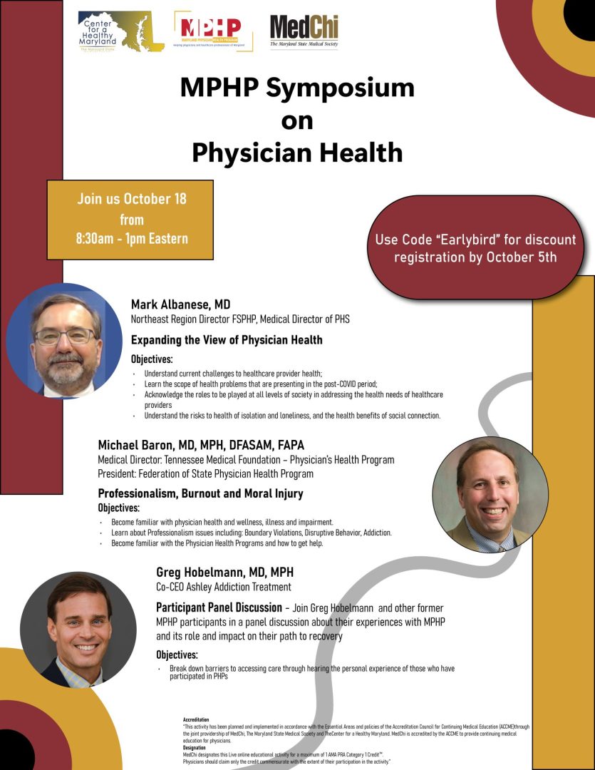 The symposium’s purpose is to increase awareness of the Physician Health Program Model and